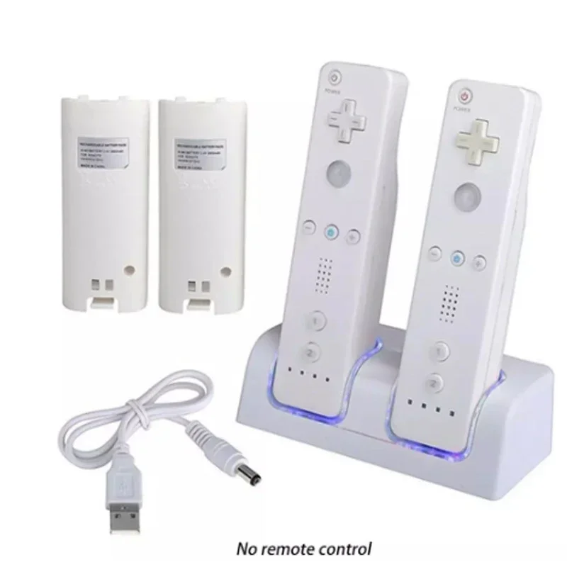 2 Ports Charging Stand Dock Station + 2 Batteries for Wii Gamepad Remote Controller Charging Dock Station