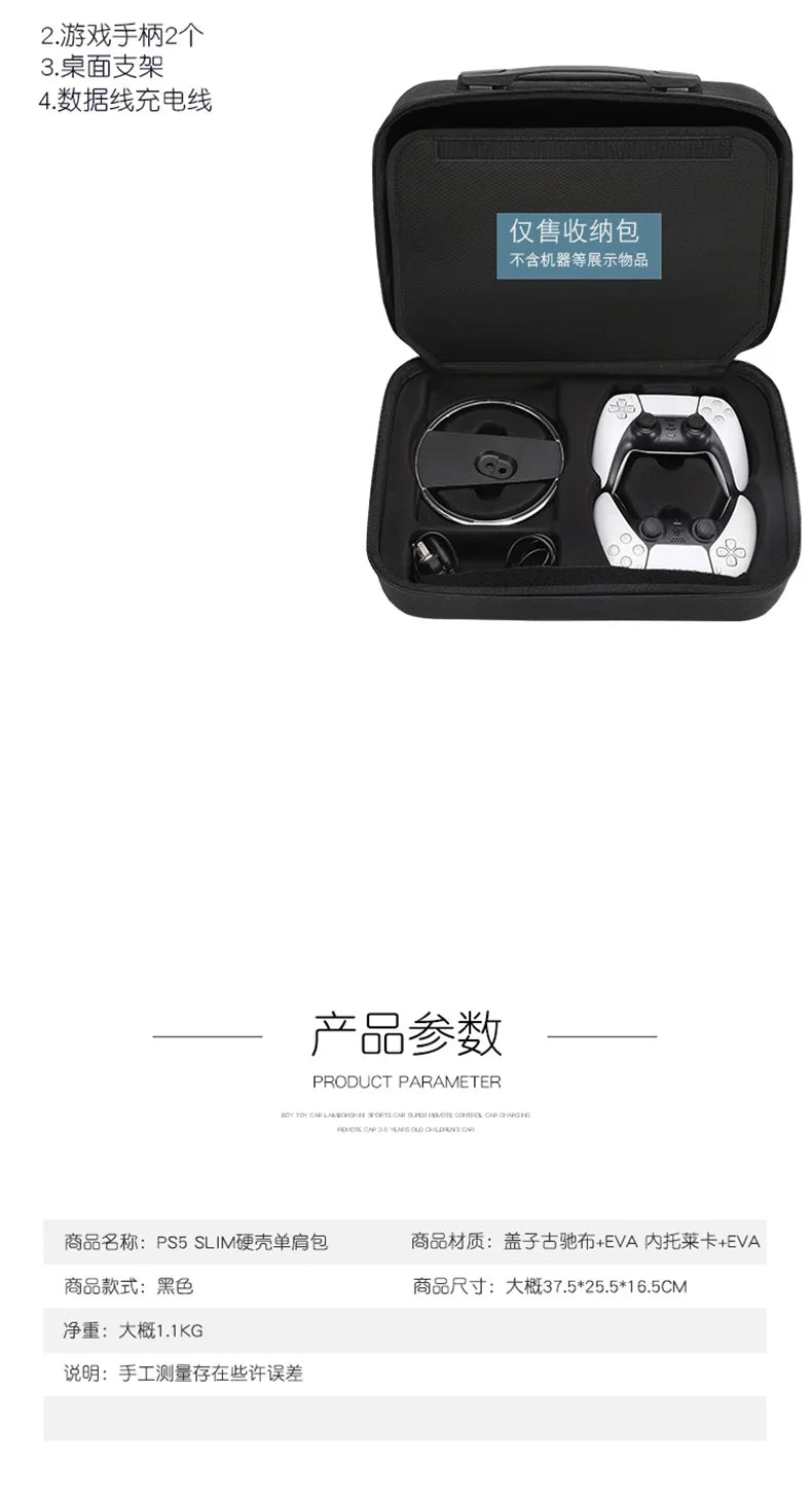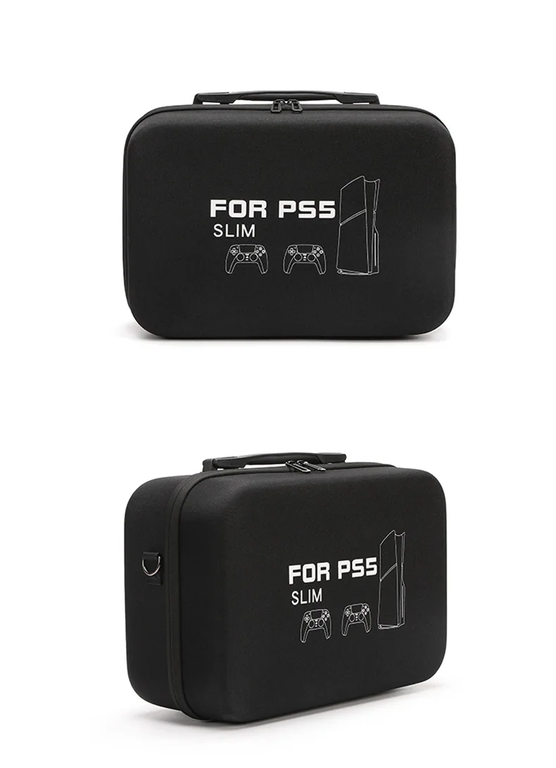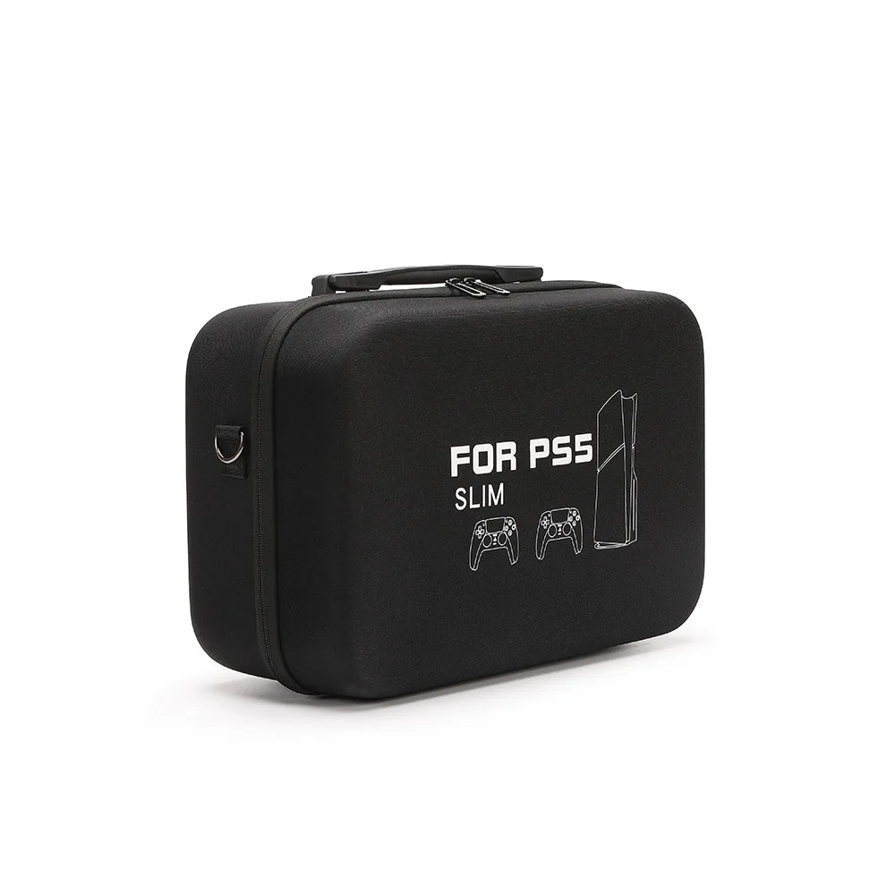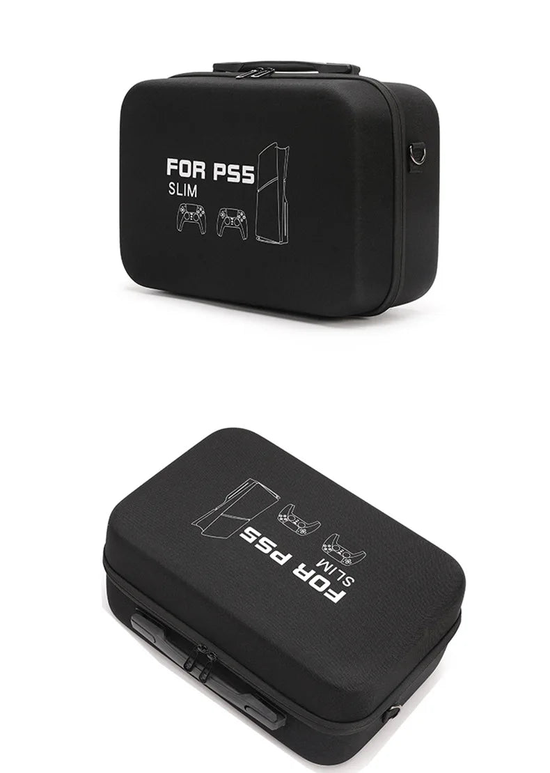 For PS5 Slim Console Carrying Case Lightweight EVA Hard Shell Storage Bag with Shoulder Strap Fits 2 Controllers Stand Cables