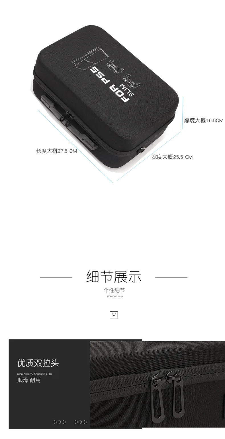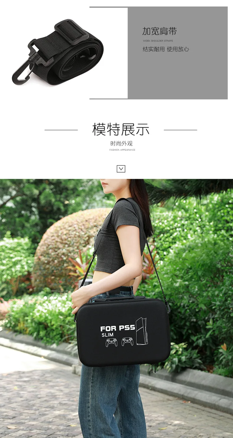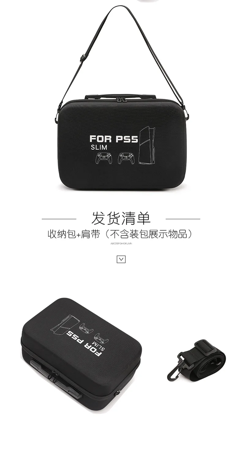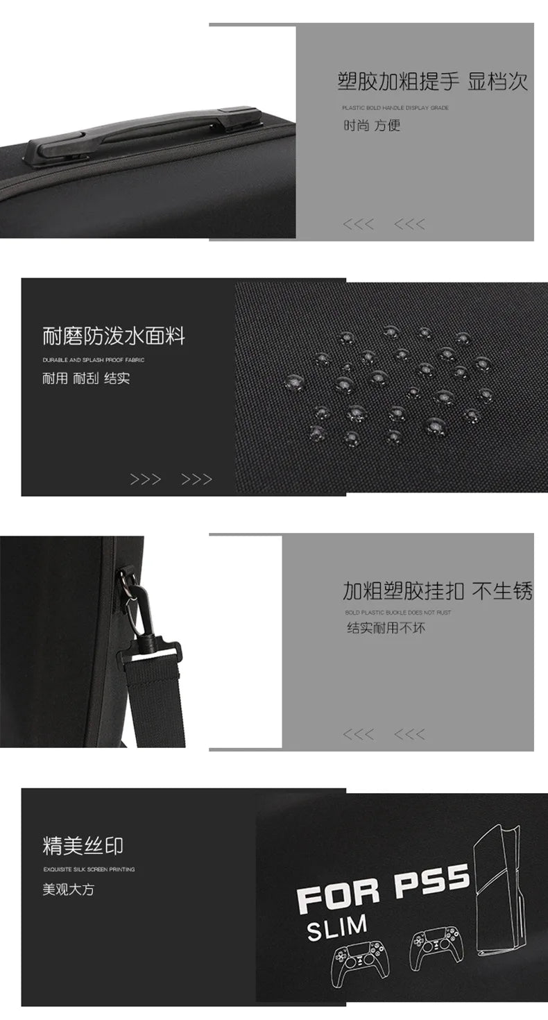 For PS5 Slim Console Carrying Case Lightweight EVA Hard Shell Storage Bag with Shoulder Strap Fits 2 Controllers Stand Cables