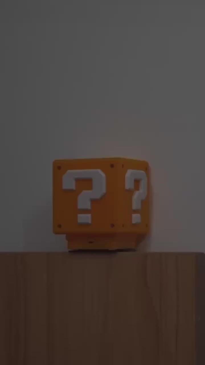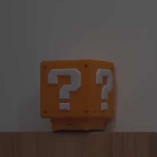 Lampada a forma di cubo con punto interrogativo che emette dei suoni.