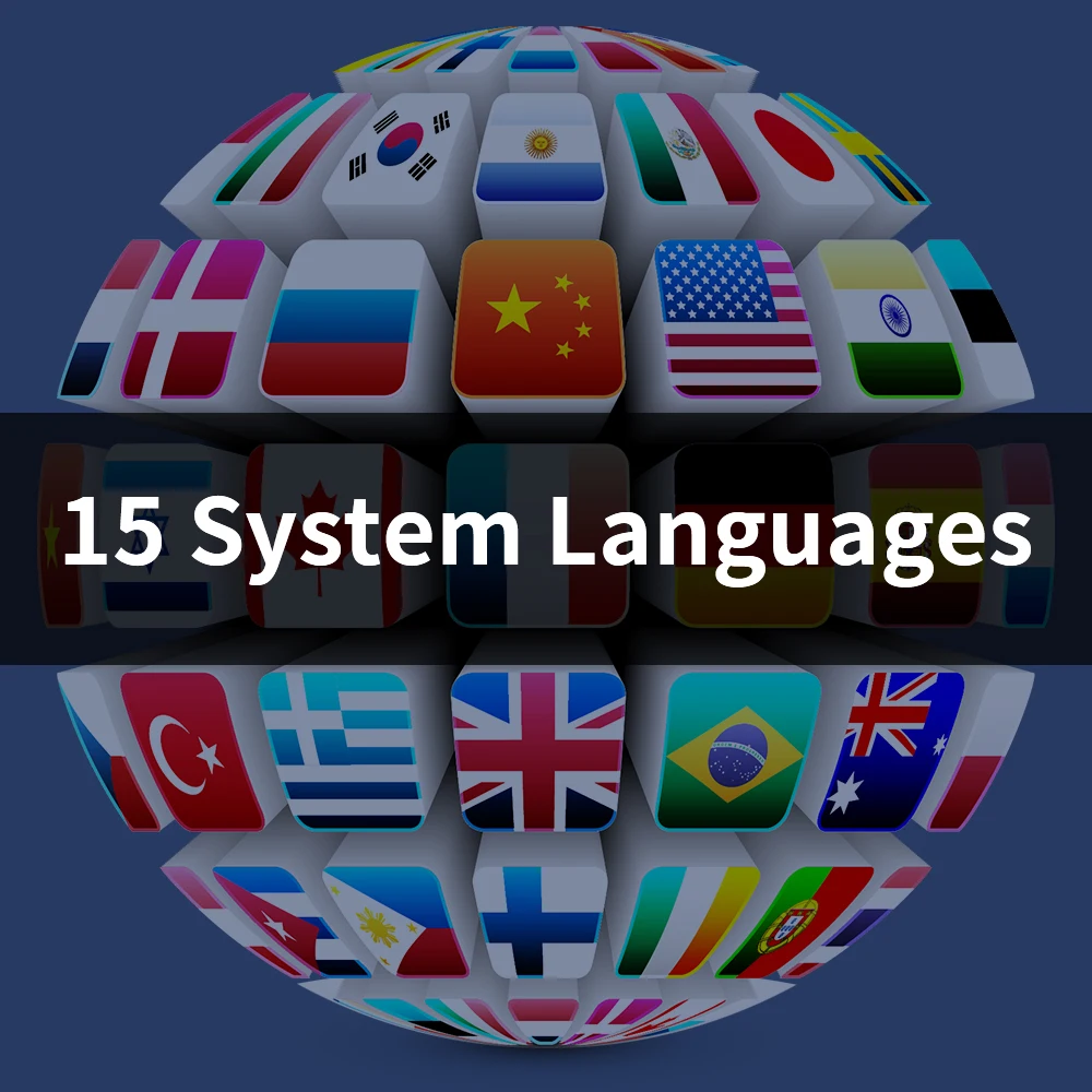 Multilingual system, capable of supporting English, Japanese, Portuguese, Russian, etc.