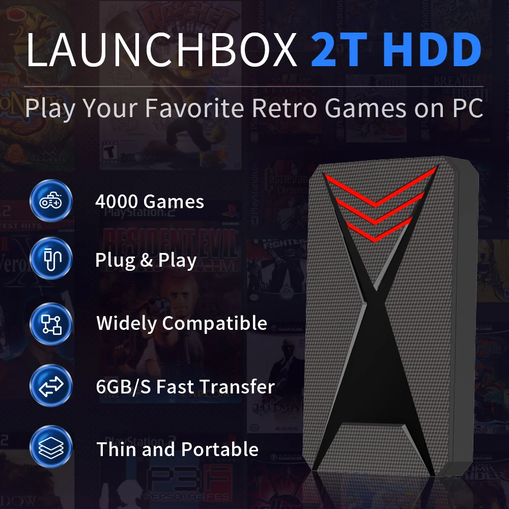 Launchbox 2TB Retro Gaming Hard Drive For PC/Laptop External HDD With 3D Games PC Games for PS4/PS3/PS2/PS1/WIIU/N64/Sega Saturn