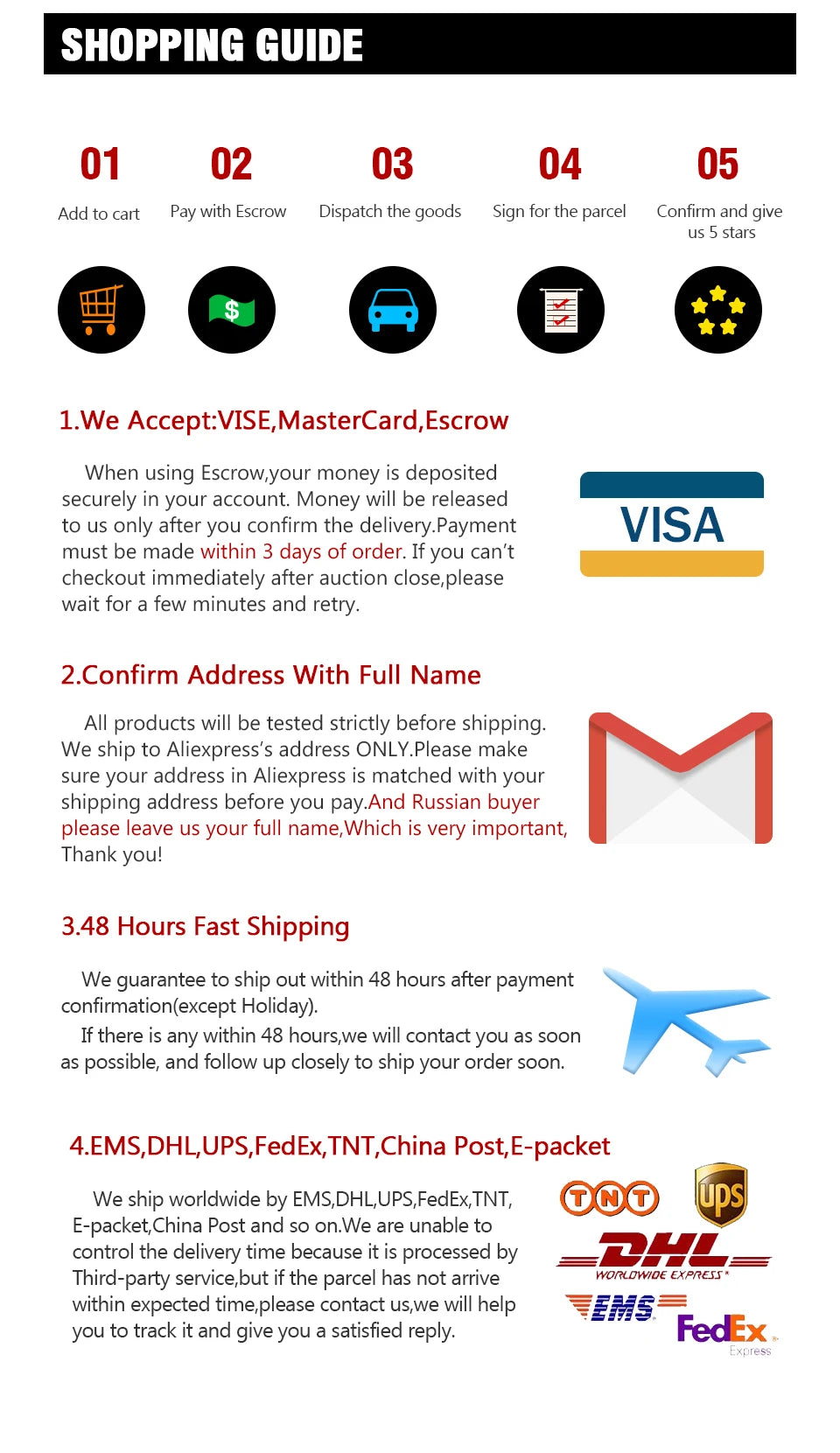 Tutti i nostri prodotti verranno spediti con corriere espresso in un arco temporale che varia dalle 24 alle 48h, eccetto cause di forza maggiore. Incluso nella spedizione è offerto un servizio di tracking e assicurazione.