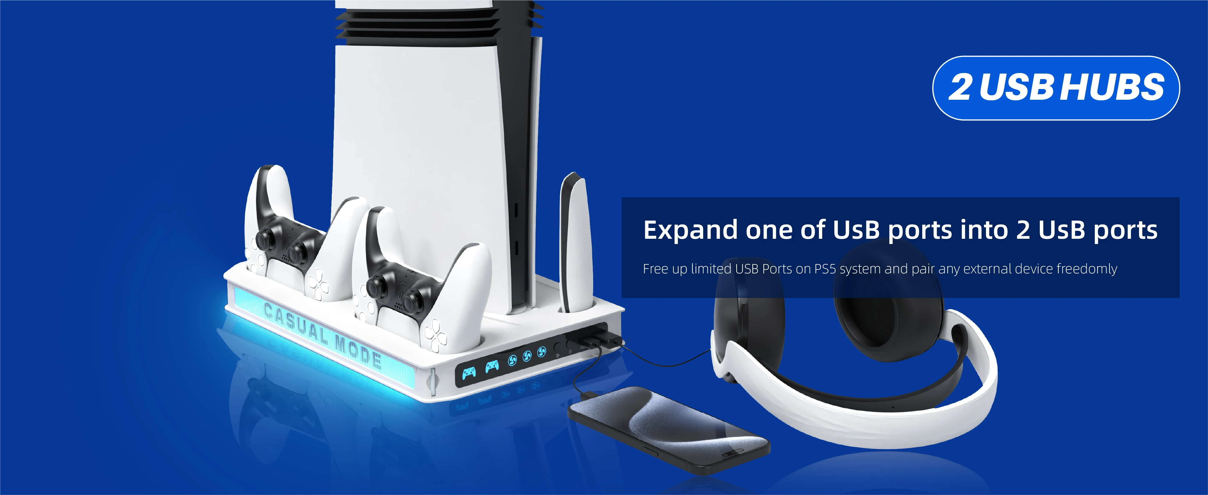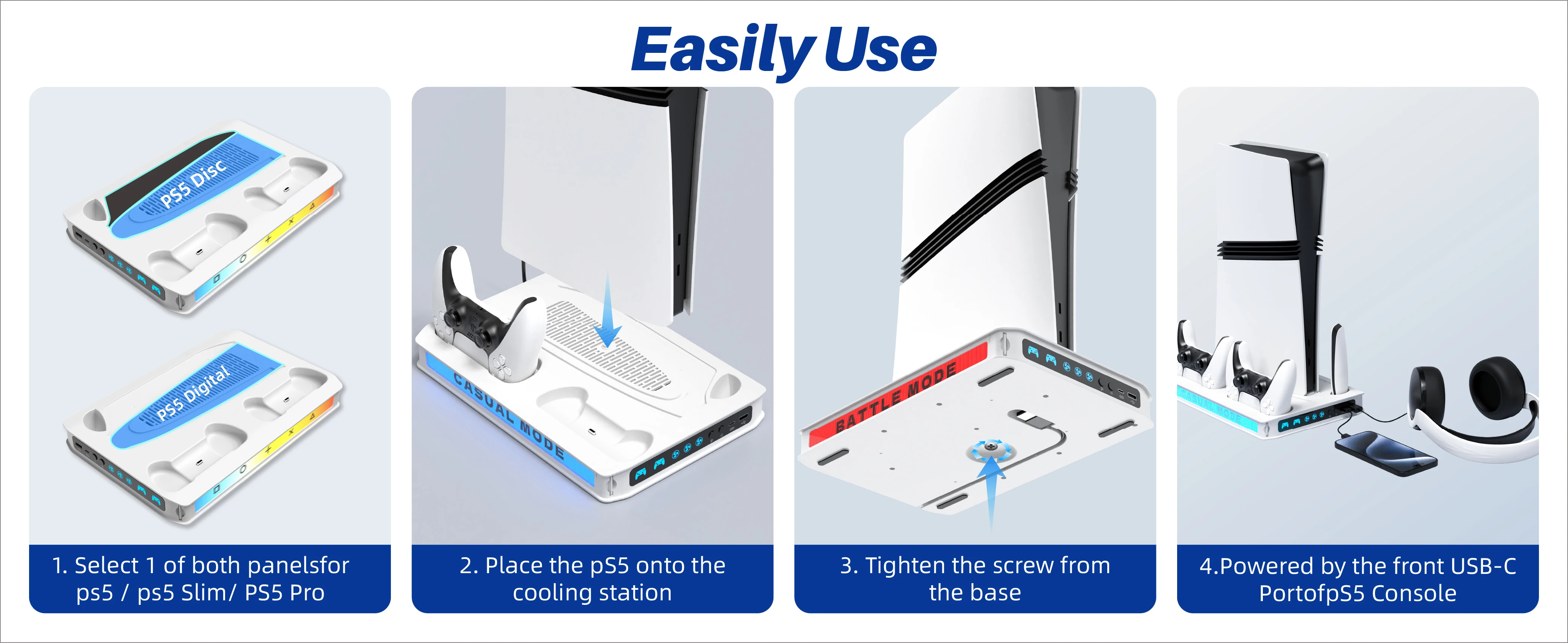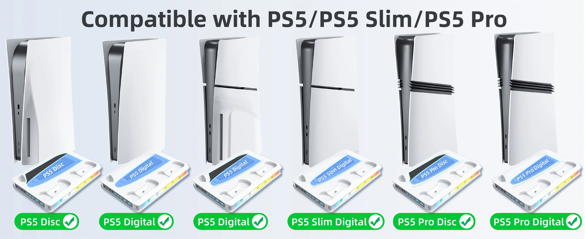 【Compatibility】Matching the PS5/ Slim/Pro digital edition and disc edition consoles perfectly and it comes with a safety screw well equipped to the ps5 vertical stand system to securely connect the ps5 console to the ps5 base station. Making it stay firmly on desk and more stable. On top of that, it pairs flawlessly with the original PS5 controllers or the Edge controllers.