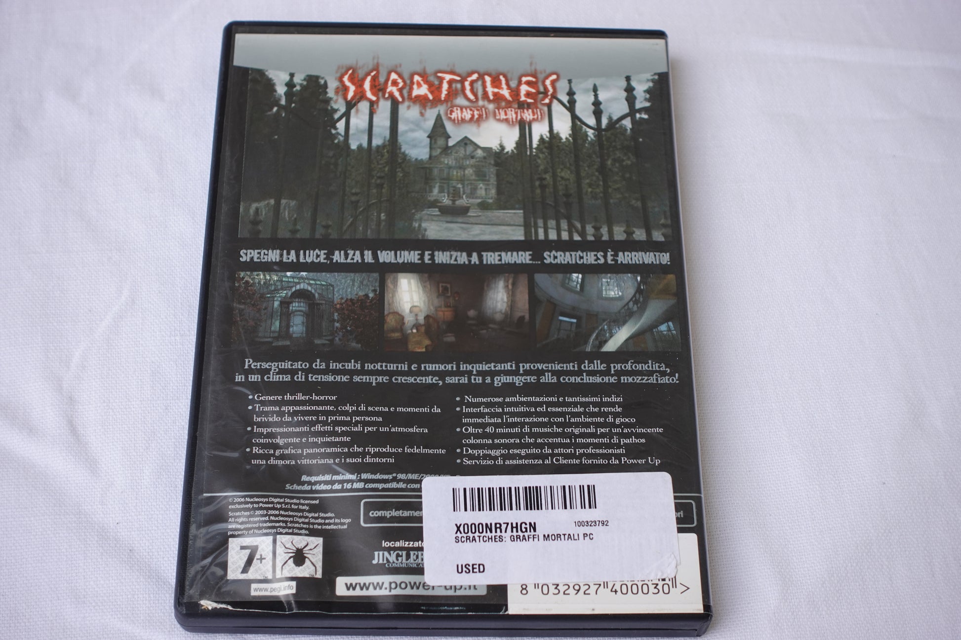 Scratches: Graffia la Mortalità per PC - Edizione Fisica Completa Descrizione del Prodotto: Vendo il videogioco Scratches: Graffia la Mortalità in edizione fisica per PC. Il prodotto è in ottime condizioni, praticamente pari al nuovo. Include la custodia originale, il CD senza graffi e il libretto completo. Un vero pezzo da collezione per gli amanti del genere. La Trama: Un Mistero che Ti Catturerà Vestirai i panni di Michael Arthate, uno scrittore solitario che, per trovare l'ispirazione per il suo prossimo romanzo, si trasferisce in un'antica e isolata magione vittoriana. Ma presto si accorge che la casa nasconde un passato oscuro e terrificante. Vecchi segreti, indizi nascosti e suoni inquietanti ti accompagneranno in un'avventura che metterà alla prova il tuo ingegno e il tuo sangue freddo. Se ami i giochi d'avventura punta e clicca e i thriller psicologici, Scratches ti terrà incollato allo schermo fino alla fine. Requisiti Minimi di Sistema: Sistema Operativo: Windows 98/2000/ME/XP (compatibile con versioni successive) Processore: Pentium III 500 MHz o superiore RAM: 64 MB Scheda Video: Scheda grafica 3D con 16 MB di RAM compatibile con DirectX 8.0 Spazio su Disco: 1 GB di spazio libero Periferiche: Tastiera e mouse Perché Acquistarlo? Questo non è solo un videogioco, ma una vera e propria esperienza narrativa, perfetta per chi cerca una storia profonda e un'atmosfera unica. Se sei un collezionista o semplicemente vuoi riscoprire un capolavoro del genere horror-mistero, questa edizione fisica in perfette condizioni è un'opportunità da non perdere. Non esitare a contattarmi per qualsiasi domanda o per richiedere altre foto.