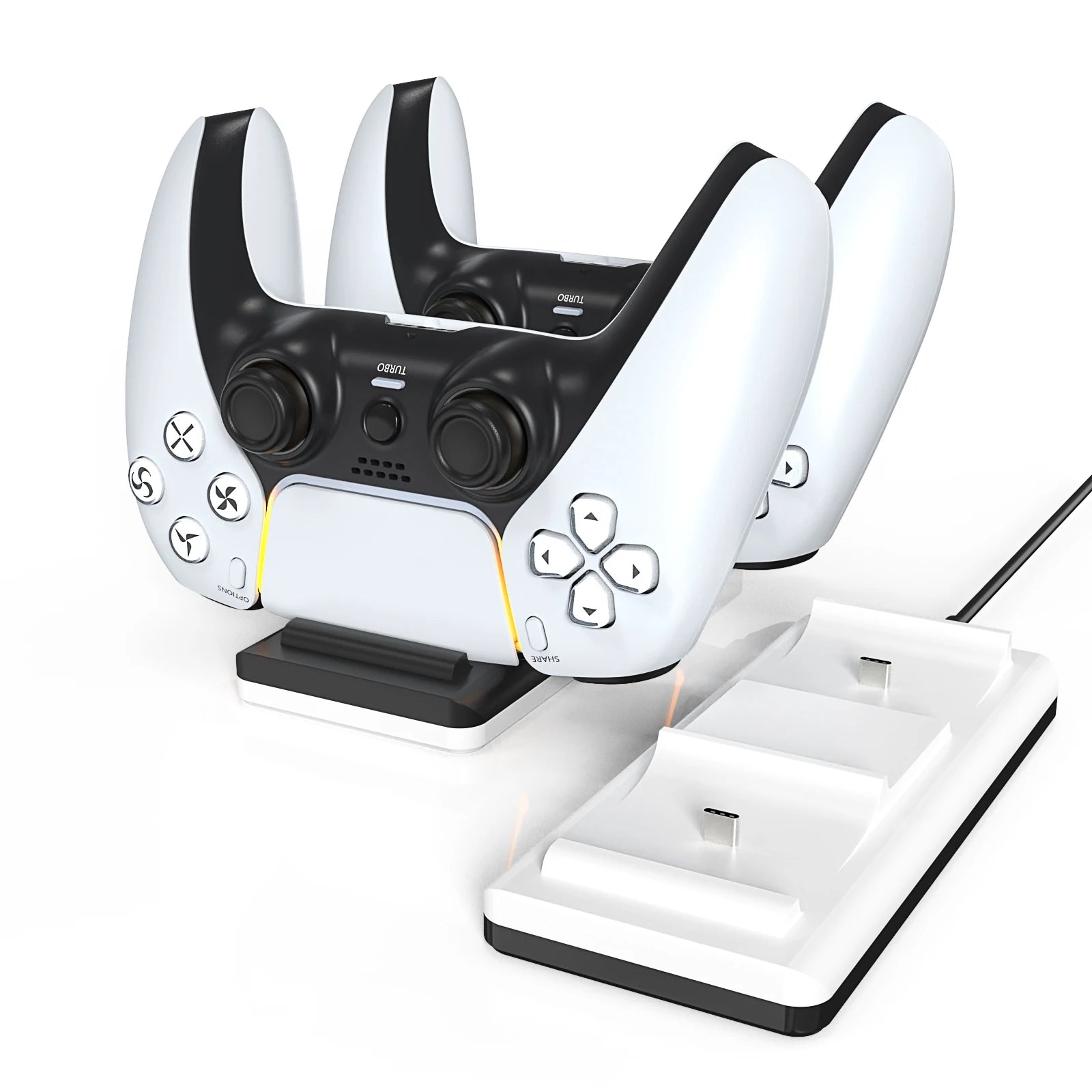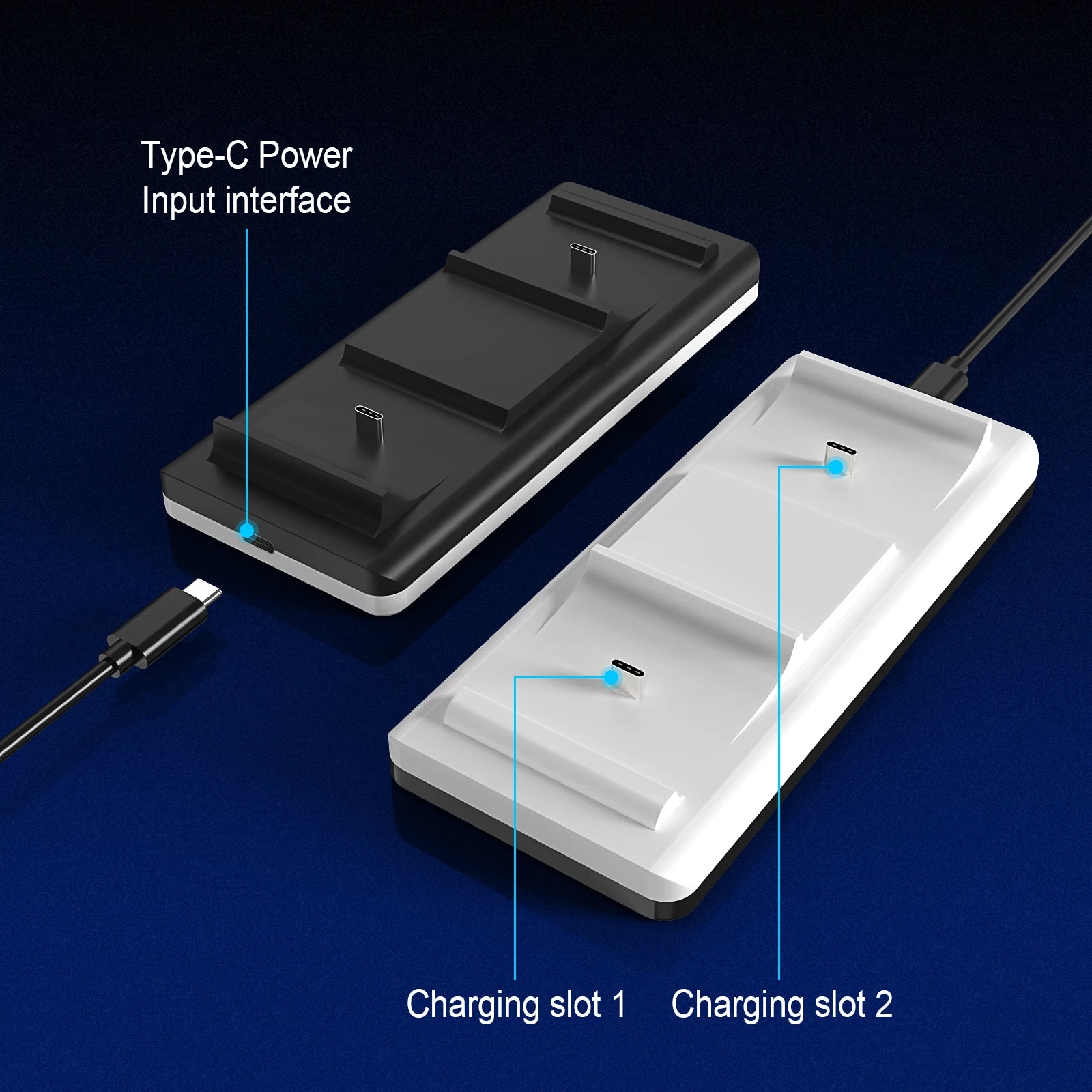 The charger is suitable for PS5 game controllers, supports 2 PS5 controllers to charge, with charging indicator/USB cable