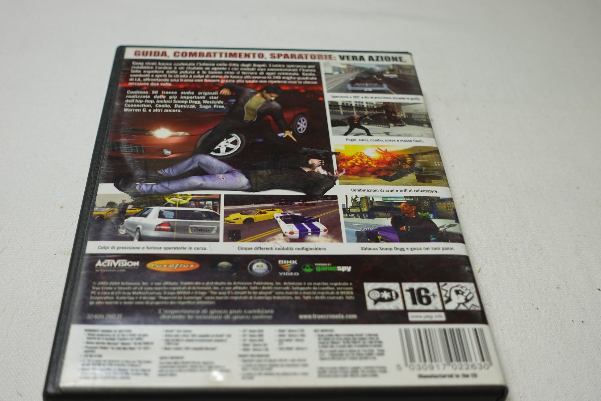 Vendo una copia completa dell'epico gioco d'azione open-world True Crime: Streets of L.A. per PC CD-ROM. Questo gioco ti mette alla guida della caccia al crimine, nei panni del detective ribelle Nick Kang. Dovrai dare la caccia ai gangster e risolvere una misteriosa sparatoria che coinvolge agenti federali e bande criminali.